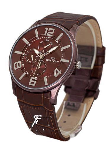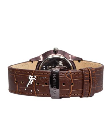 ساعت مچی مردانه با بند چرم قهوه ای و دوزمانه وسترن