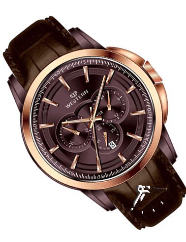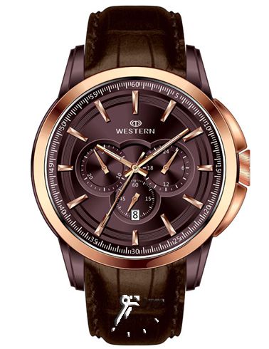 ساعت مچی مردانه با قاب گرد رزگلد و دوزمانه وسترن