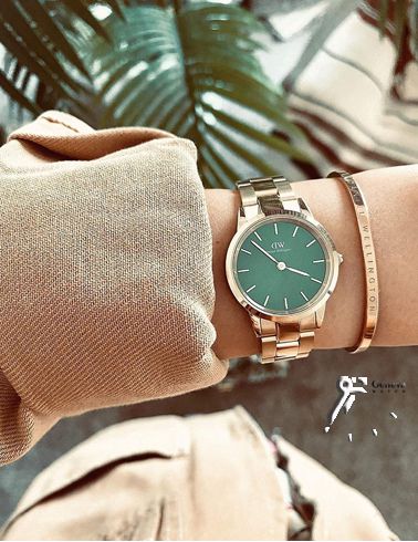 ساعت مچی با بند رزگلد و صفحه سبز رنگ دنیل ولینگتون