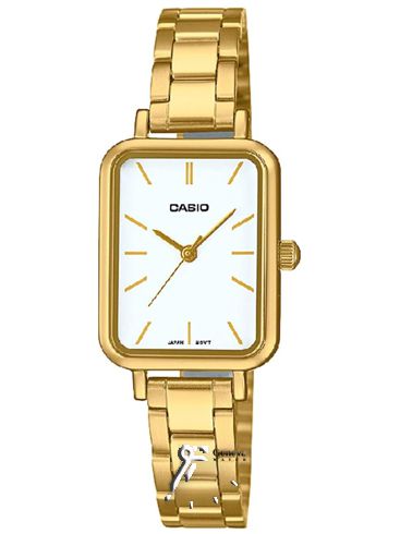 ساعت مچی زنانه با بند استیل طلایی و صفحه سفید کاسیو