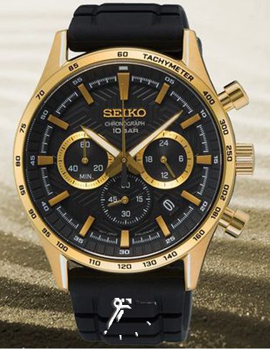 ساعت مچی مردانه اسپرت با شیشه ضد خش و قاب طلایی رنگ سیکو