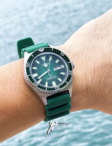 ساعت مچی مردانه اسپرت با بند سبز رنگ رابر و اتوماتیک سیتیزن
