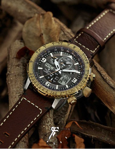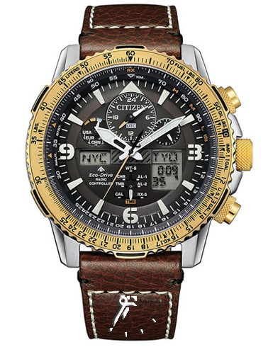 ساعت مچی مردانه با بند چرم قهوه ای زنگ سیتیزن با قابلیت نمایش میزان ذخیره شارژ و تایمر معکوس