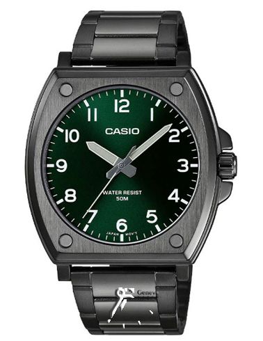 ساعت مچی مردانه کلاسیک تمام استیل با صفحه سبز رنگ و عقربه های شب نما کاسیو