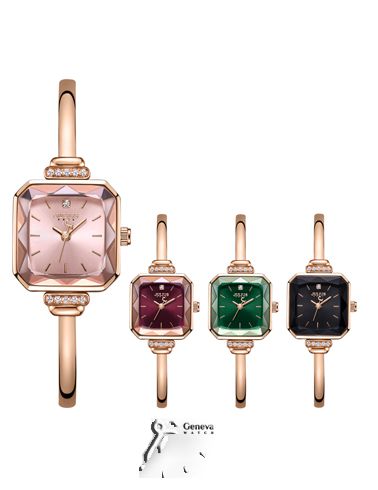ساعت مچی اورجینال زنانه عقربه ای، با صفحه سبز رنگ مربعی شکل جولیوس