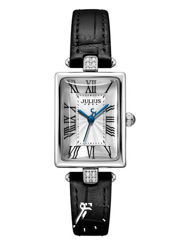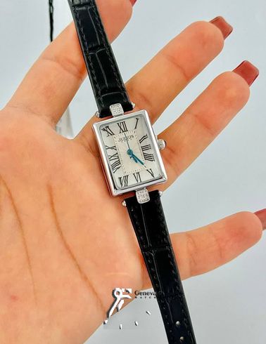 ساعت مچی با بند چرمی مشکی زنانه دارای قاب نگین دار و موتور کوارتز ژاپن جولیوس