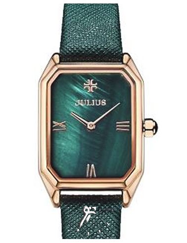 ساعت مچی عقربه ای زنانه بند چرمی با صفحه سبز رنگ و مقاوم در برابر آب جولیوس