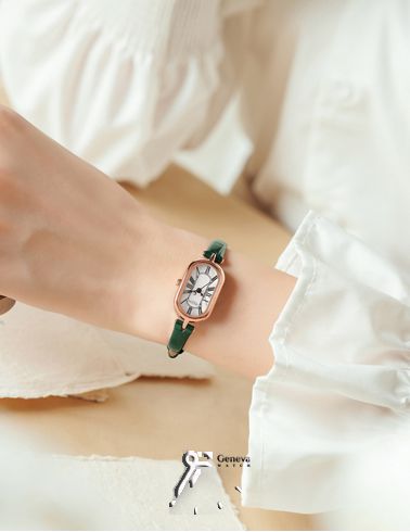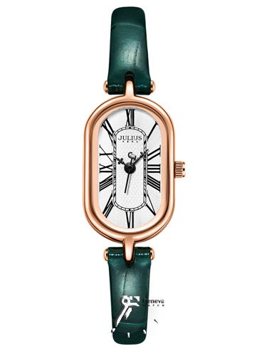 ساعت مچی اورجینال زنانه کره ای جولیوس با صفحه سفید رنگ و بند چرم سبز رنگ، مقاوم در برابر آب(30 متر)
