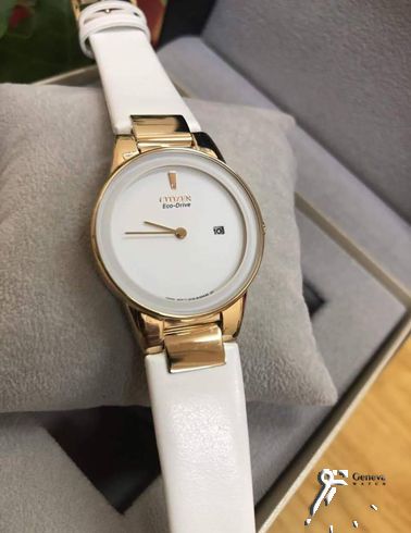 ساعت سیتیزن اکوداریو بند چرم سفید