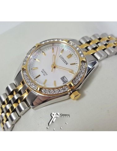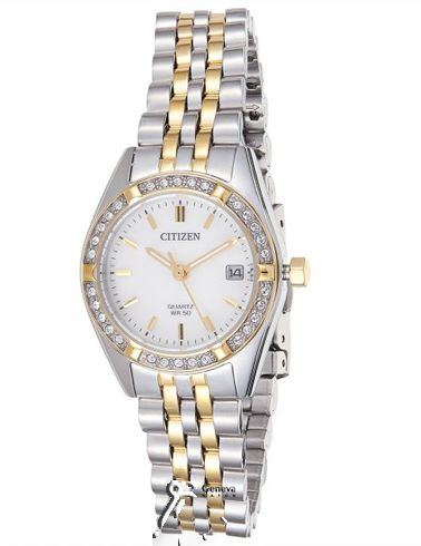 ساعت مچی سیتیزن زنانه کوارتز دورنگ طلایی نگین دار