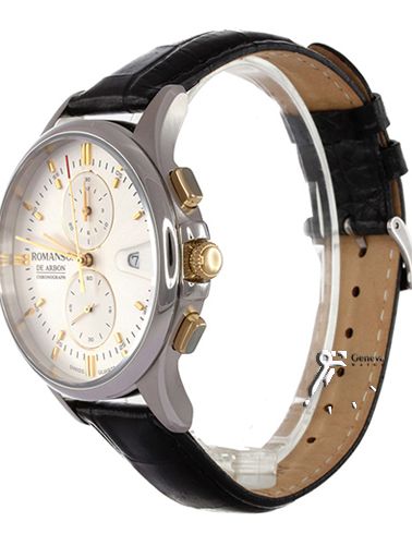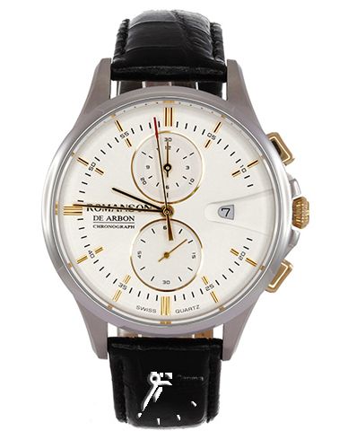 ساعت مردانه صفحه سفید با بند چرم مشکی رومانسون