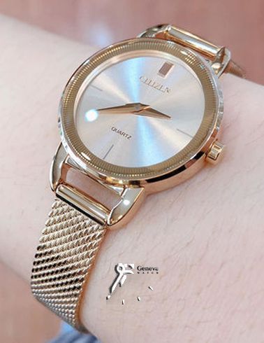 سیتی زن زنانه رزگلد بند حصیری