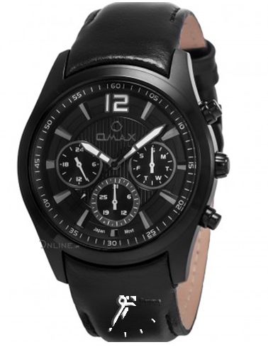 ساعت مچی مردانه با بند چرم طبیعی مشکی رنگ اوماکس