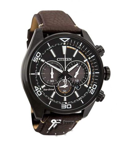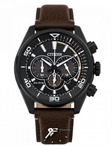ساعت مچی بند چرمی قهوه ای با قاب استیل مشکی سیتیزن