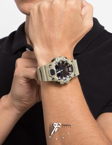 کاسیو مردانه مشکی سبز ورزشی تمام پلاستیک