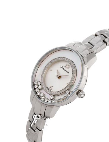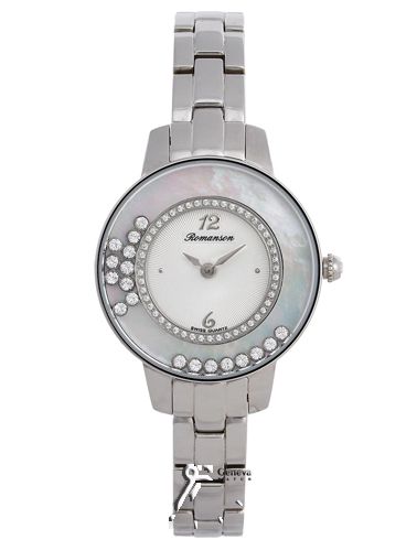 ساعت کلاسیک با بند استیل زنانه و دارای نگین های متحرک درون قاب شیشه ای رومانسون